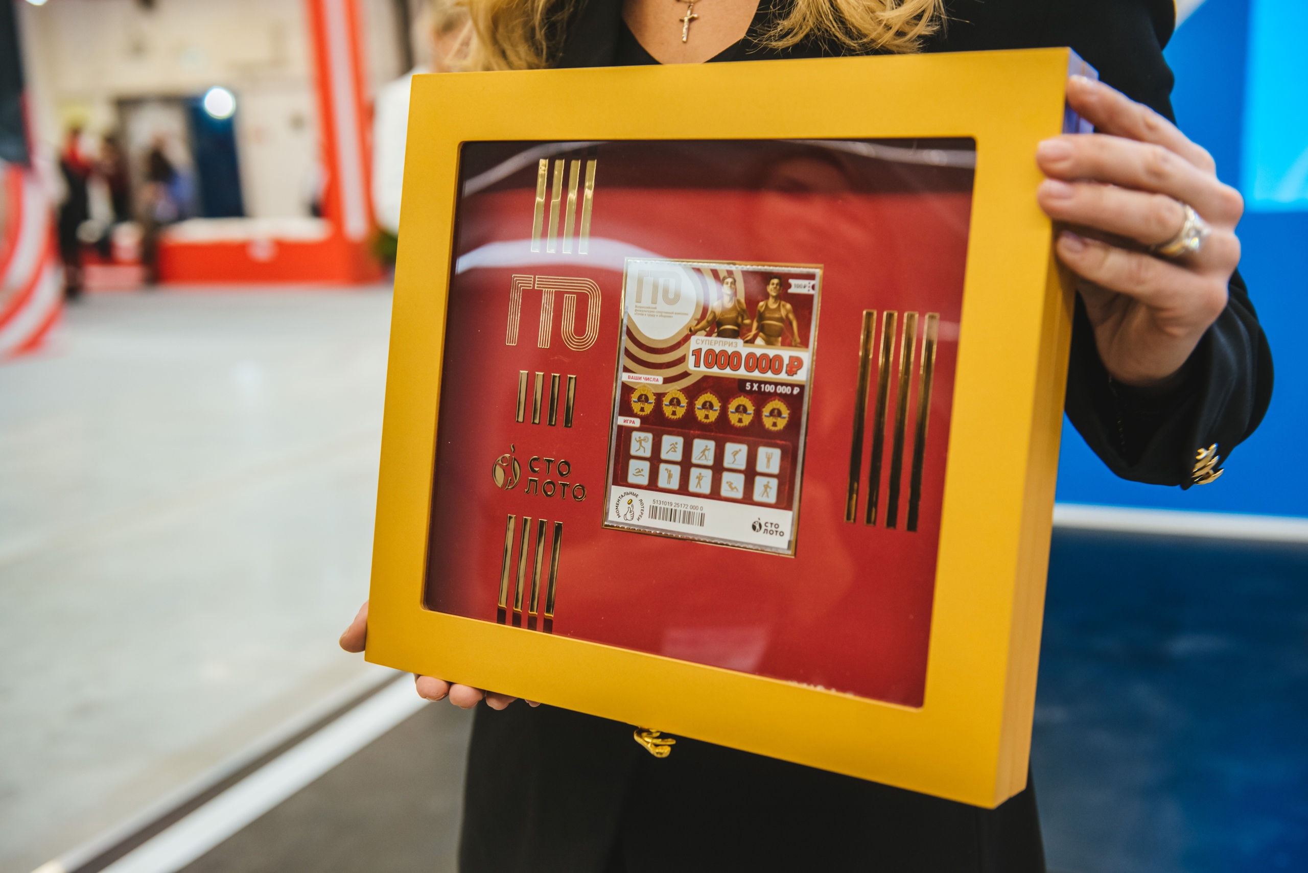 Торжественная демонстрация первого в истории лотерейного билета с символикой «Столото» и ГТО прошла сегодня, а первый экземпляр был передан в фонд Государственного музея спорта в МВЦ ГТО.
