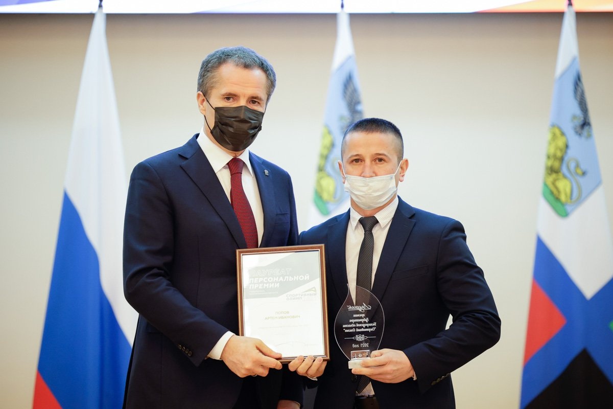 28 февраля 2022, в администрации Белгородской области состоялась первая в истории церемония награждения лауреатов премии Губернатора Белгородской области "Спортивный Олимп" - 2021. Одними из почетных гостей стали наши тренеры и спортсмены: Попов Артем, победитель Всероссийского фестиваля чемпионов "Игры ГТО" и наши замечательные тхэквондисты Мусаев Евгений и Суменкова Анастасия с тренером Федченко Геннадием Викторовичем. В их копилке множество медалей всероссийского и международного уровня. Спортсмены получили заслуженные награды. Поздравляем, верим и гордимся каждым!